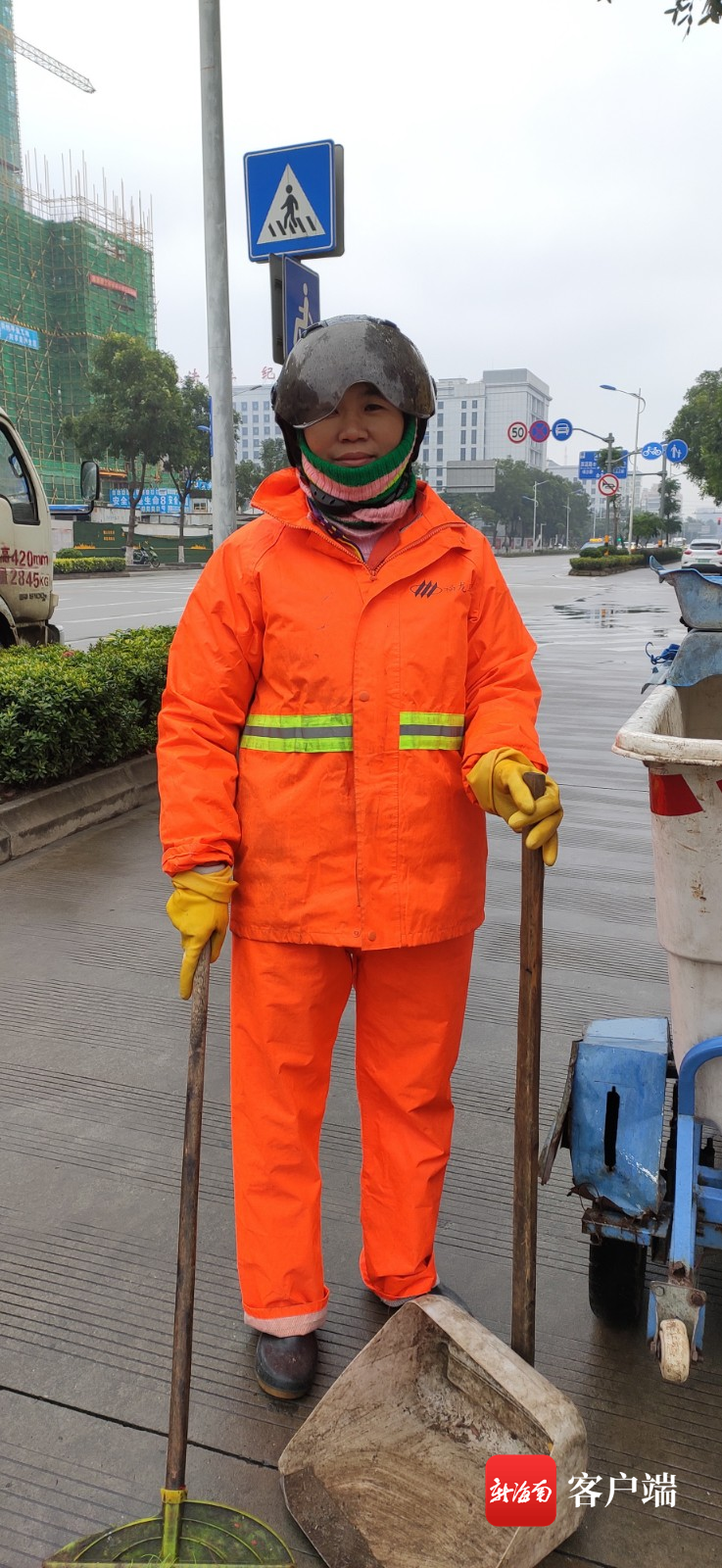 吳揚(yáng)娣2016年進(jìn)入海口龍馬環(huán)衛(wèi)公司,一直負(fù)責(zé)金牛北路段的保潔,她上的是中班。該路段兩側(cè)都由她清掃,約1公里路面。