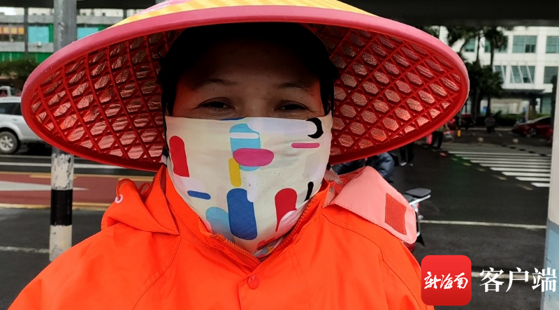 11日下午3點(diǎn),在海口金牛北路段,40歲的環(huán)衛(wèi)工吳揚(yáng)娣正在清掃路面上的枯枝葉等垃圾。因?yàn)閿?shù)小時(shí)在路面上走動(dòng)清掃,她呼吸出來(lái)的熱氣早已在安全帽上的擋風(fēng)片上凝結(jié)成一片朦朧的水珠。