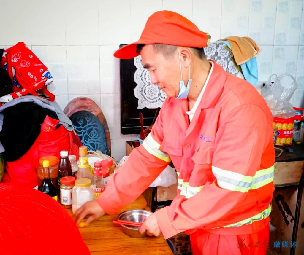 云惟定在海口龍馬環(huán)衛(wèi)公司已工作14年,每天凌晨4點(diǎn)都要到龍華路點(diǎn)位開始打掃街道,因沒有交通工具,長期以來無論刮風(fēng)下雨一直都是走路上下班。