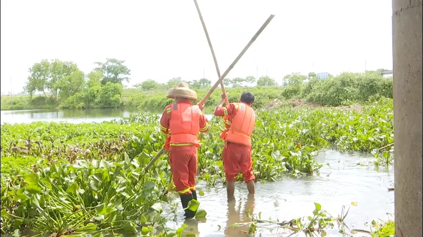 周乃順告訴記者說,推動水浮蓮不能用蠻力 ,需要善于觀察風向,順著風推,才會省時省力。值得注意的是,這水浮蓮是可以隨時順著水流“漂移”的,他與同事們經(jīng)常要沿著溝渠追趕 。在炎熱的夏季,要身著救生衣下水作業(yè),不到一會兒就大汗淋漓。