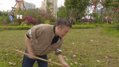 由于落葉重量輕、體積小,緊緊地貼在地表,環衛工人用笤帚清掃起來,很不容易。