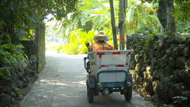 村里有不少枝繁葉茂的叢林地帶,僅依靠常規的環衛設備很難保證衛生清潔,而環衛工人杜美燕身上背著的這臺吹風機就能精準解決痛點。通過強勁的風力將枝葉縫隙里的垃圾吹出來,不僅提高了作業效率,更提升了凈化能力。