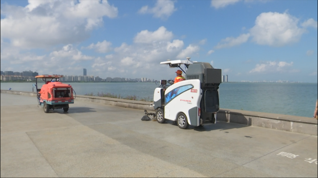 漫步道路沿石部分的清潔,也是環衛工人關注的重點。路沿石存在著一定的縫隙,容易藏污納垢,普通的掃帚觸摸不到,環衛工人采用小型高壓水車加電動機掃車的作業模式,一前一后,噴水加濕后進行洗刷,污垢被一掃而空。