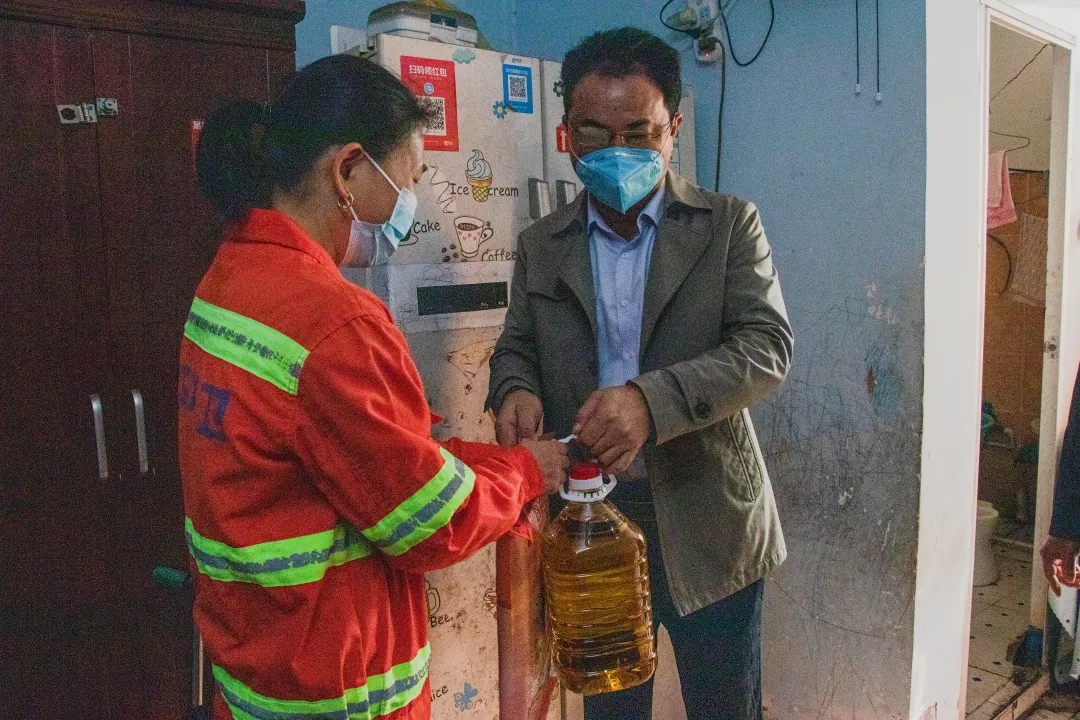 副總經(jīng)理廖萬(wàn)凱、工會(huì)主席陳偉慰問(wèn)環(huán)衛(wèi)工人吳連霞家庭