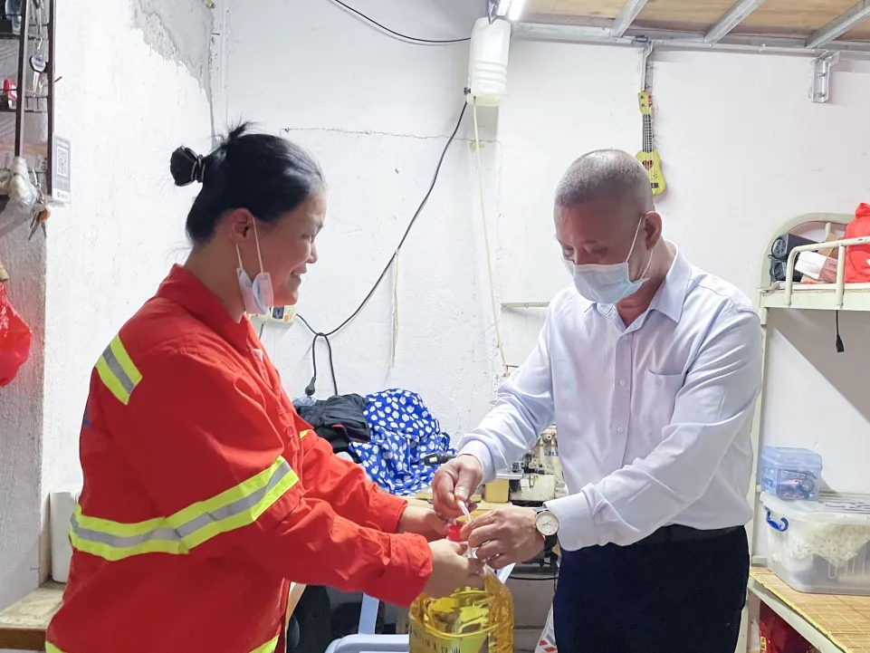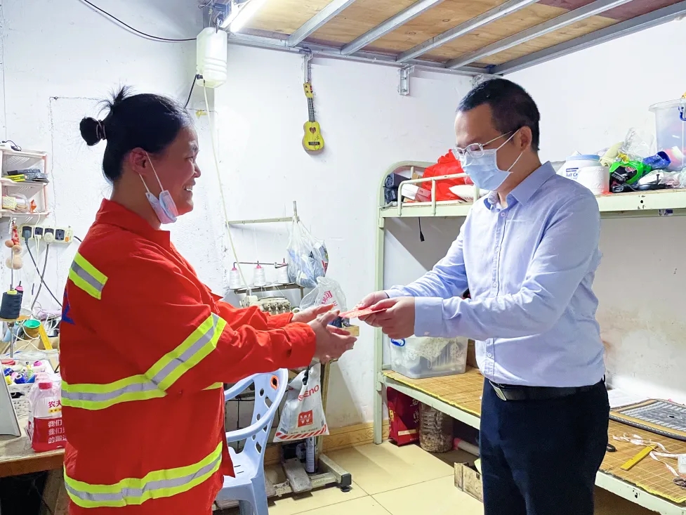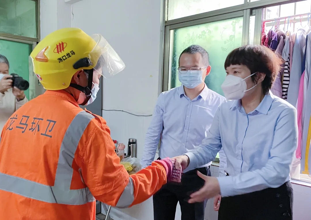 活動結束后,福龍馬海口公司常務副總經理黃彪、副總經理邢益芳、廖萬凱、督查總監陳偉等領導來到一線環衛工人家中,送上節日的祝福。