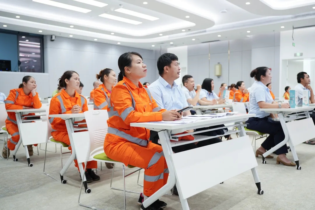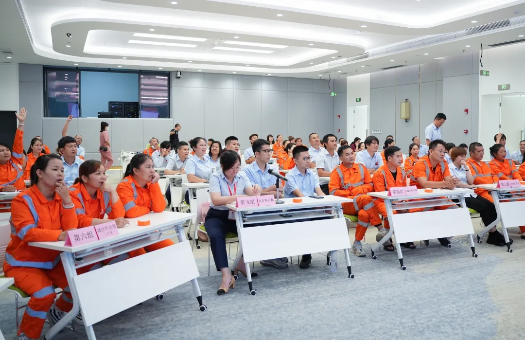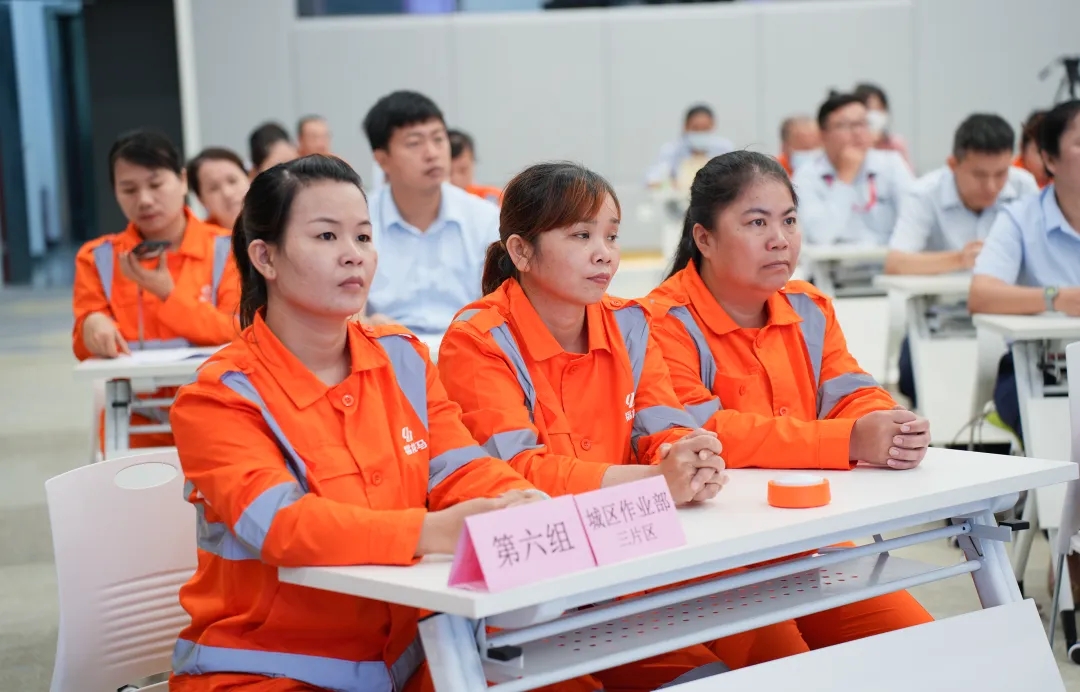參加比賽的選手有來自一線的環衛工人,還有公司后勤人員,他們快速敏捷的思維和熟練準確的答題贏得了現場觀眾的陣陣掌聲。比賽分為必答題、搶答題、互動答題三個環節,比賽過程中,選手們精神飽滿,斗志昂揚,拼答題手速,拼知識儲備,充分展現了新時代環衛人積極向上、奮發進取的精神風貌。