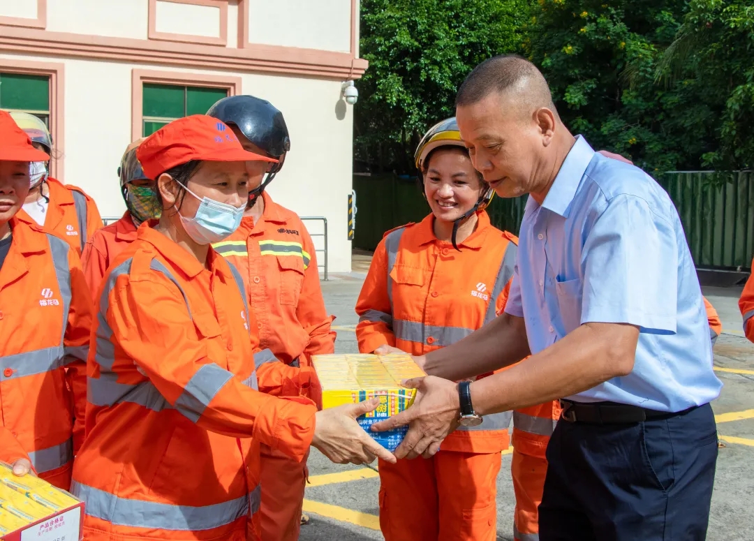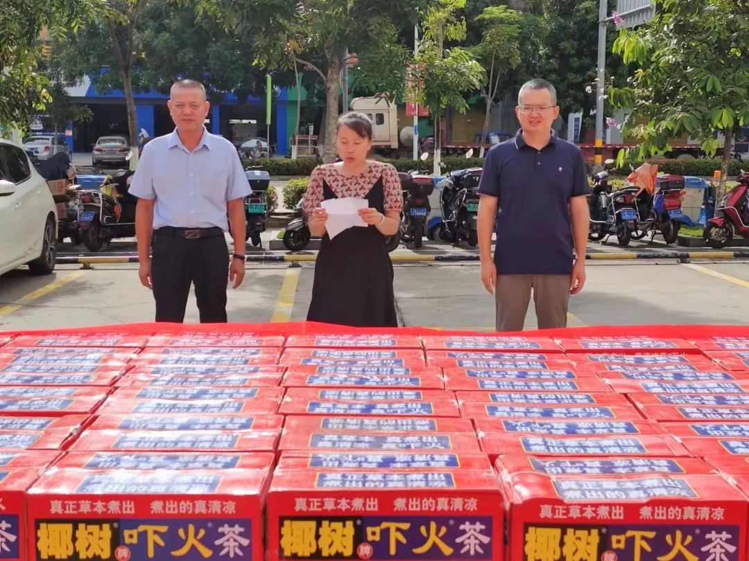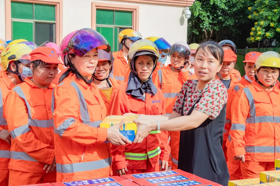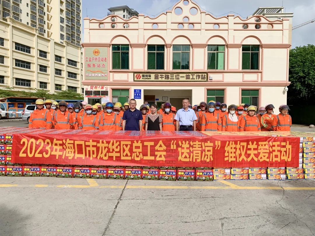 海口的酷暑考驗(yàn)著堅(jiān)守一線的廣大環(huán)衛(wèi)工人們,8月2日,龍華區(qū)總工會(huì)在福龍馬海口公司金牛路三位一體工作站開展2023年“送清涼”維權(quán)關(guān)愛活動(dòng),現(xiàn)場(chǎng)慰問福龍馬海口公司一線環(huán)衛(wèi)工人,為她們送來菊花茶、嚇火茶等降溫降暑飲品,感謝環(huán)衛(wèi)工人為城市的整潔和美麗付出的辛勤勞動(dòng)。