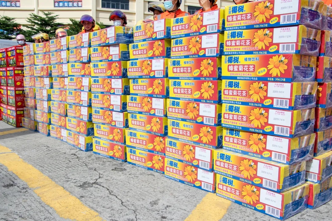 福龍馬海口公司常務(wù)副總經(jīng)理黃彪發(fā)放降溫降暑飲品
