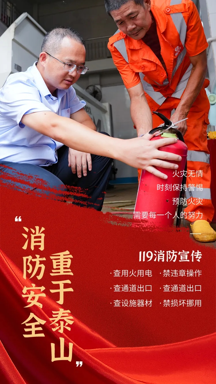 福龍馬海口公司將消防安全始終放在日常安全管理上最為重要的一級,公司安全委員會定期組織專人對安全事故易發點展開拉網式排查整治,對公廁、垃圾中轉站、庫房、環衛車輛全面消除安全隱患。片區管理人員定期檢查消防設施的維護保養、疏散通道和安全出口。