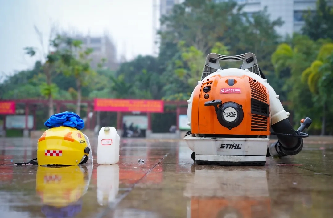 吹風機作業安全比賽中,員工使用油鋸/吹風機作業前,口述油鋸/吹風機使用安全注意事項,再進行作業,只見參賽隊員一絲不茍、操作有序,贏得了陣陣喝彩。