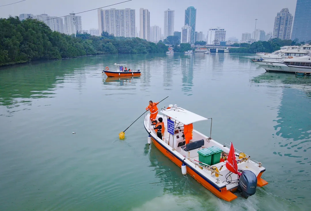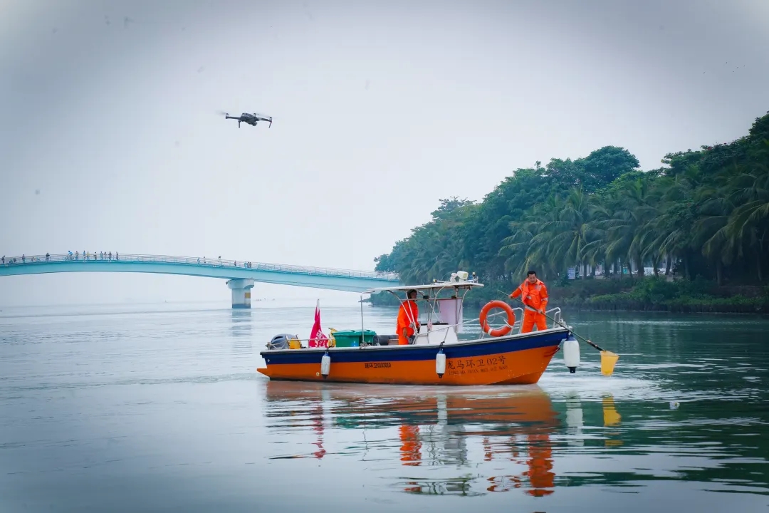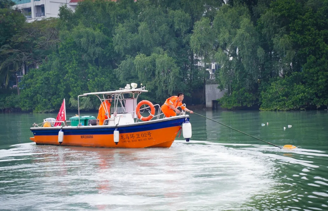 海上環衛作業安全比賽,水域人員登船作業,選手登船作業前穿戴好救生衣,登船后對船只開展各項安全檢查,并模擬打撈水面漂浮物,作業結束后固定好船只及卸載垃圾。參賽選手們沉著冷靜,展示出訓練有素的操作能力以及團隊的默契配合,贏得了評委的一致好評。