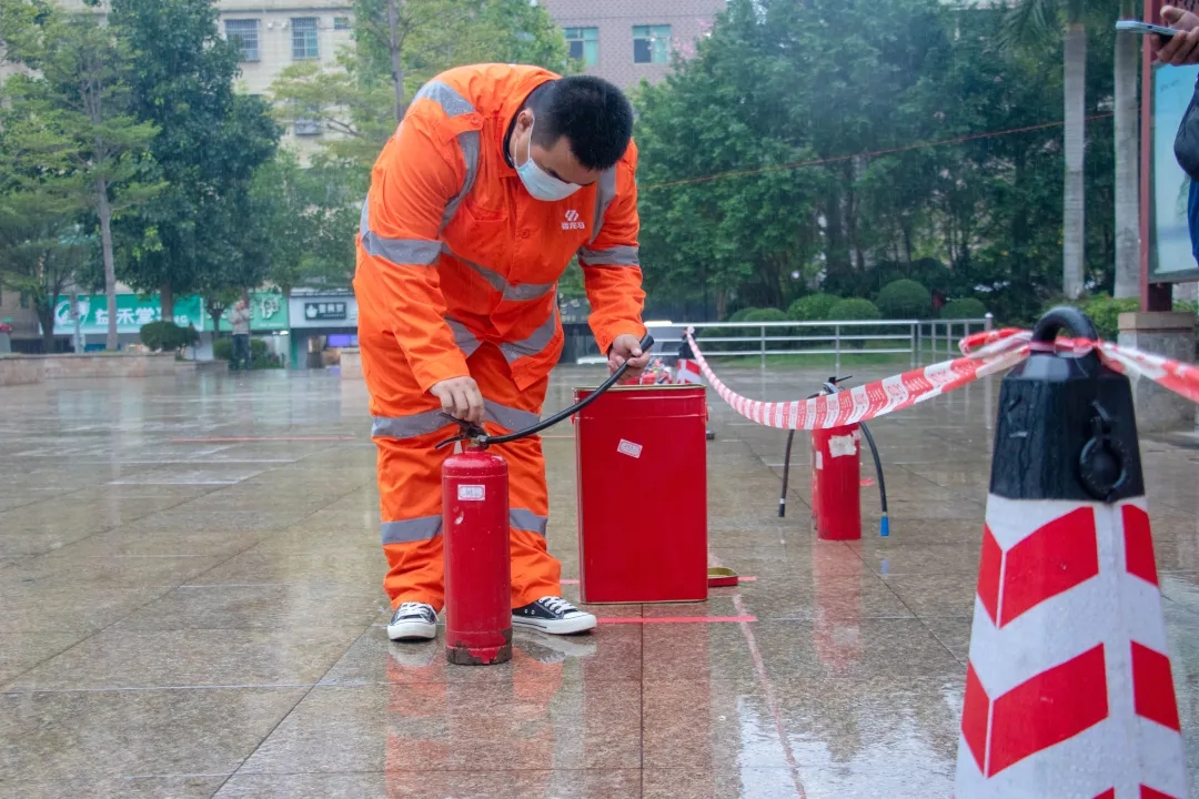 比賽中,只見選手們拿起滅火器進行查看檢查,并跑向著火物體,根據現場風向選擇站位,單手或雙手提起滅火器,拔下保險栓,調整噴管角度、在距火焰兩米的地方進行撲救,待火全部撲滅,將滅火器放穩。參賽選手不僅要做到精準分析研判,更要做到有條不紊開展救火等各項應急工作。
