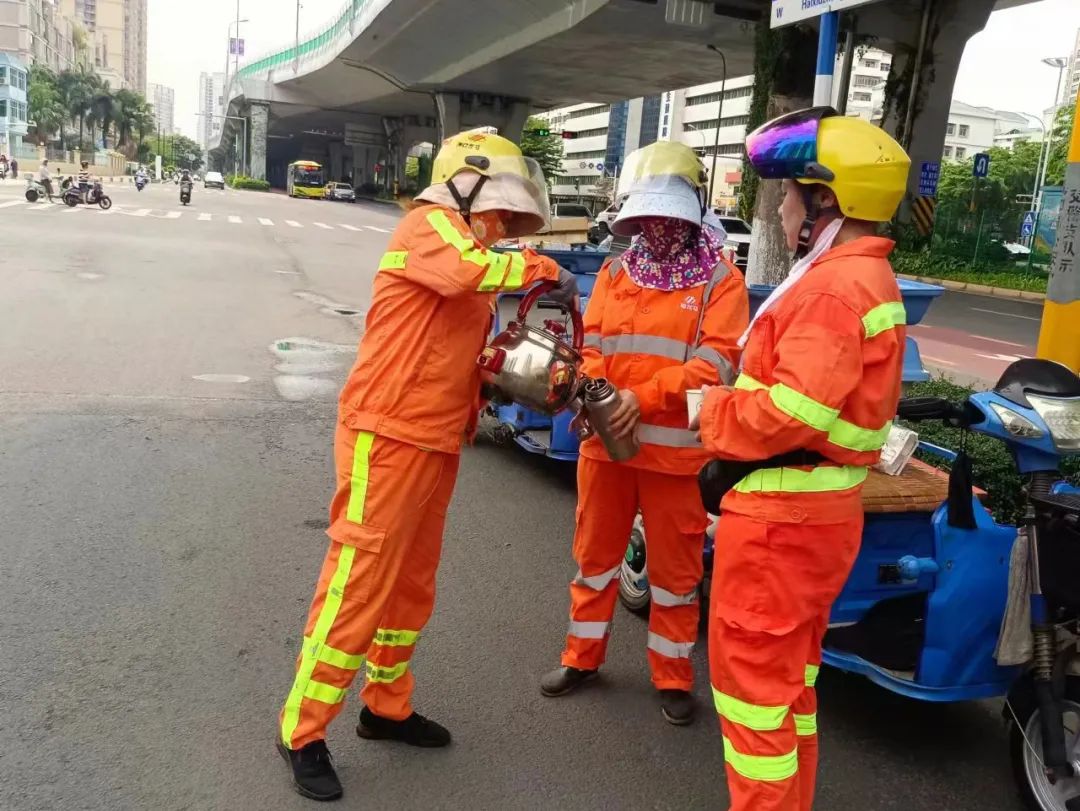 4月份海南已完全入夏,出現了當地氣候里極其少見的高溫,近日持續高溫,午后溫度已高達40度,在這樣的天氣下,一線環衛工人的熱情絲毫不減,反而“越熱越火”。