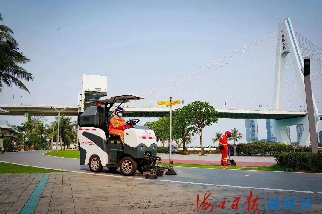 清明假期的海口灣,金色的陽光穿過樹葉灑在草地上,周圍海水環(huán)繞,碧波蕩漾,不時有海鳥飛過。市民游客沉醉在秀麗的風景中,享受美好春光。福龍馬海口公司環(huán)衛(wèi)工人不斷巡回。為了保障園區(qū)內(nèi)干凈整潔,他們不辭辛勞,不停地將掉落地上的垃圾揀拾。