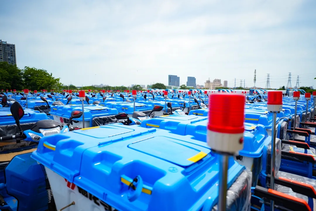 2024年6月福龍馬海口公司的數百名環衛工人匯聚在福龍馬蒼西村的停車場內,他們正準備迎新“隊友”。而這些“隊友”正是2024年福龍馬海口公司采購的新設備,包括智能清掃機器人、純電動四輪掛桶車、純電動三輪高壓清洗車、純電動三輪清運車、純電動三輪保潔車等,“無人駕駛”、“智能”、“環保”、“小巧”、“高效”、“舒適”是新設備的重要亮點。據了解,本次設備新增數量達300余輛。后續會增加大型設備的采購。