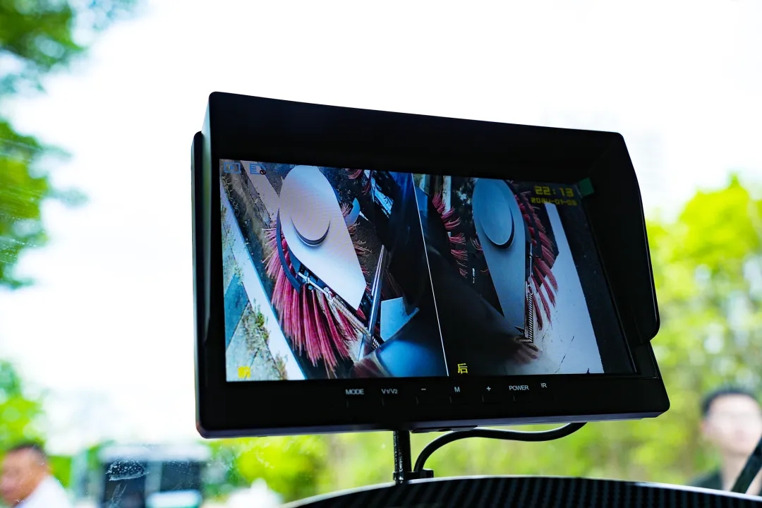 本次新設備中最大的亮點便是SD22B智能掃路機,它是一款高效、大容量、全天候作業的多功能清掃設備。它利用高精度定位算法和滑板底盤的高精度控制,能夠實現厘米級的貼邊清掃和障礙感知,大幅提升了環衛作業效率和智慧化程度。SD22B專注解決小型掃路設備的痛點問題,大幅提升了水箱和垃圾箱的容積,并采用雙邊刷+負壓吸收的設計,實現更強的清潔效果。此外,它還能夠靈活應對各種路況,觸達城市衛生死角,完成高效清潔任務。智能掃路機已經在福龍馬海口公司所在轄區中的四個片區使用。