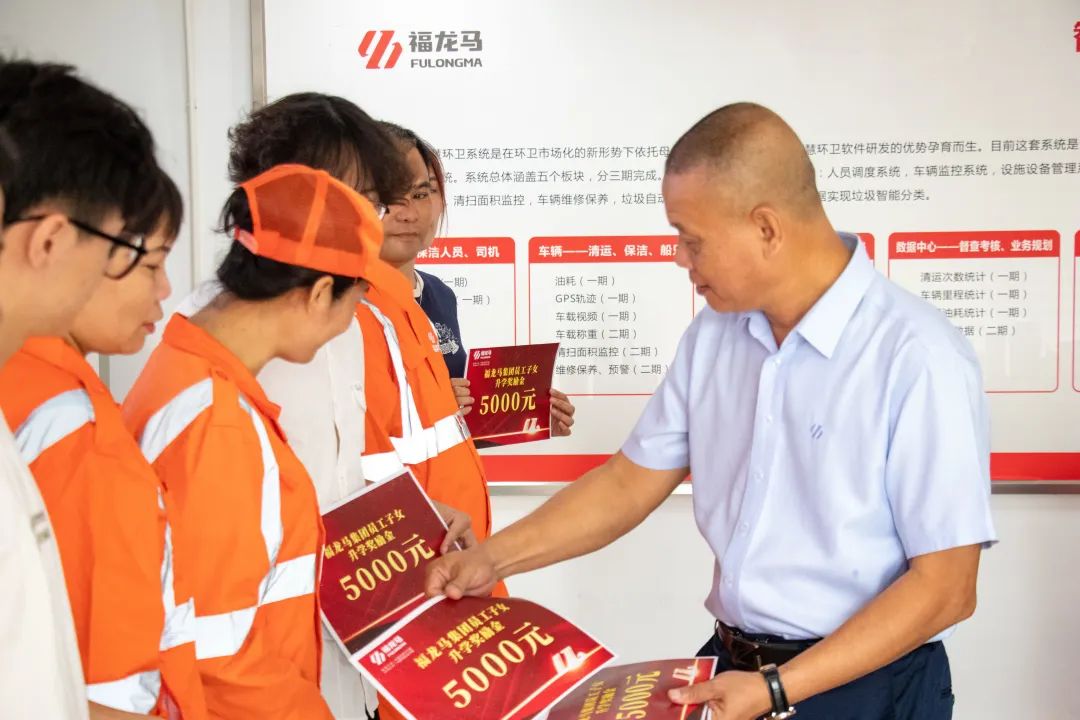 在新學期來臨之際,福龍馬集團延續傳統,向環衛工子女發放升學獎勵金,以表達對員工子女的關愛,同時緩解員工經濟壓力。每一筆獎金都飽含著集團領導的深情厚意,讓員工們倍感溫暖。