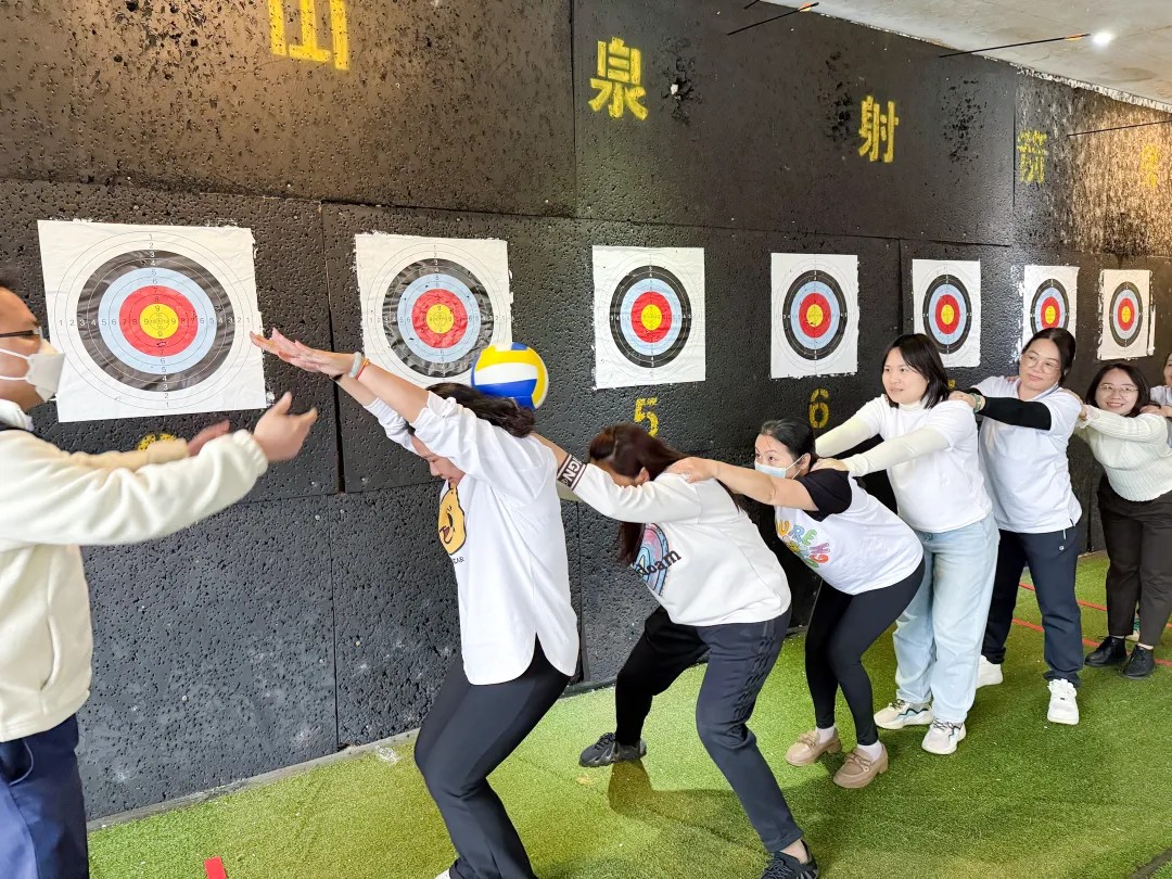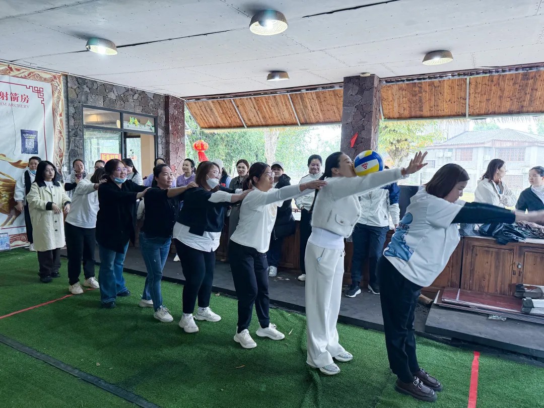 隨著活動的開場,緊張又刺激的拓展環節正式拉開帷幕。“一傳到底”考驗團隊的默契配合,大家手搭肩膀,齊心協力將球傳遞到最后;“原地踏步走”挑戰個人的平衡感和方向感,蒙上雙眼,在方寸之間尋找平衡;“猜拳過河”更是將活動推向高潮,隊長們化身“先鋒”,與對手斗智斗勇,隊員們吶喊助威,現場氣氛熱烈非凡。現場加油聲、歡呼聲此起彼伏,氣氛熱烈到了極點。