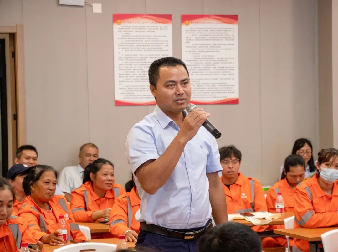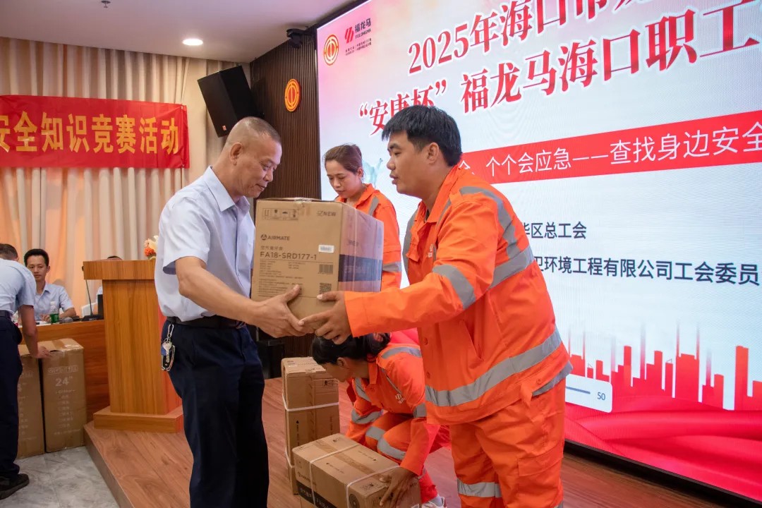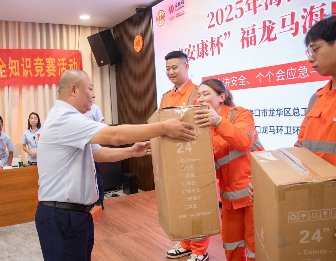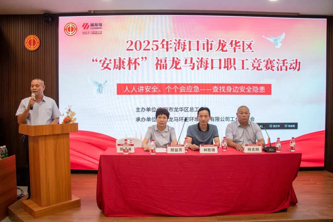 2025年6月18 日上午,正值第 24 個全國 “安全生產月”,以“人人講安全、個個會應急 —— 查找身邊安全隱患” 為主題,由福龍馬海口公司安全委員會主辦的 “安全知識競賽活動”在海口市龍華區職工活動中心火熱開賽。本次競賽由工會主席陳偉主持,城區作業部、鄉鎮作業部、機械化作業部、公司后勤等 8 支代表隊同臺競技,海口市龍華區總工會黨組成員、副主席林勝雄,福龍馬海口公司黨支部書記、副總經理邢益芳,副總經理楊志剛,工會主席陳偉等領導參加活動。