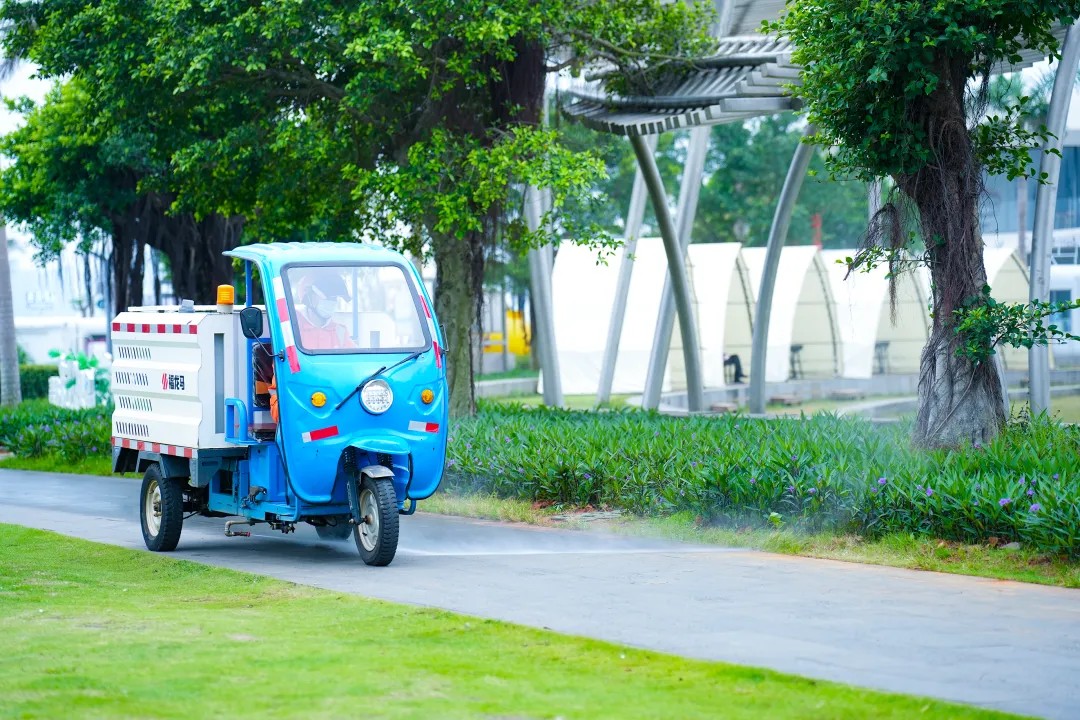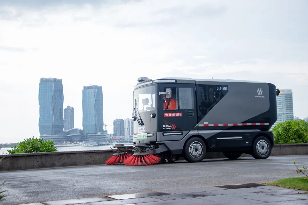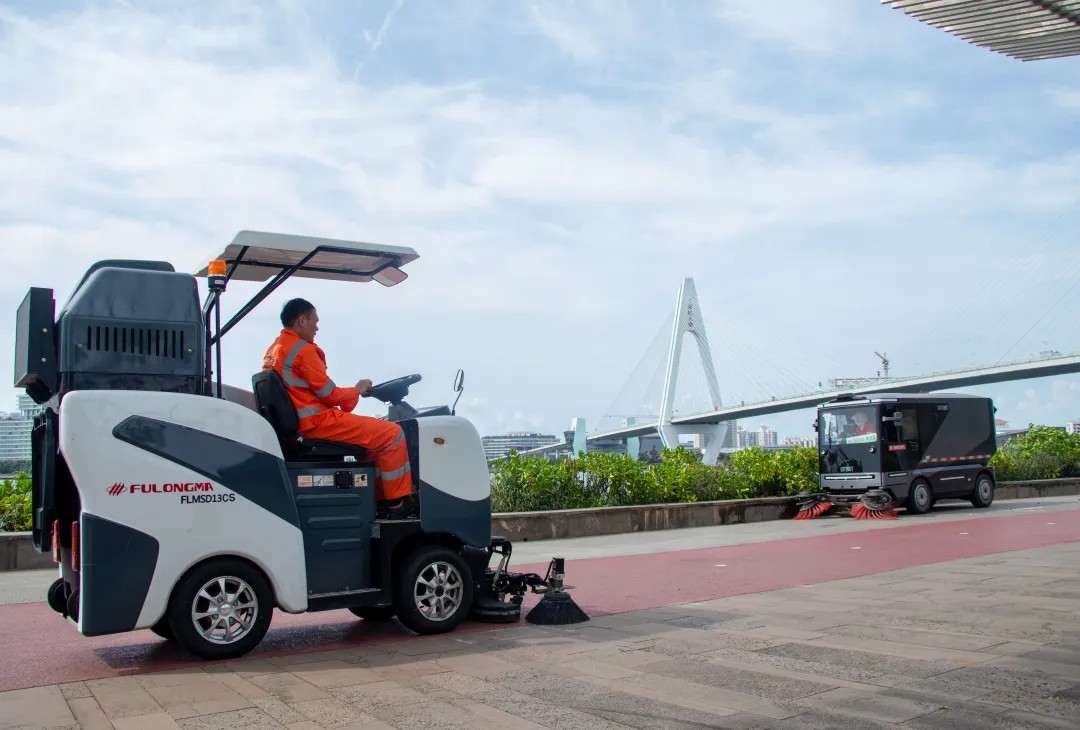 科技的力量為我們的工作插上了翅膀。公司在覆蓋19萬平方的海口灣暢通工程(含輔路、公園區域)場景中,開展了無人清掃技術的規模化應用實踐。自2022年起,投放1臺CFSD2201L2型智能掃路機和FLMSD13純電動桶裝人行道掃路機,并搭配CFSD1501L4純電動無人駕駛清掃機器人實施聯合作業,組建起一支高效的 “智能清掃團隊”。