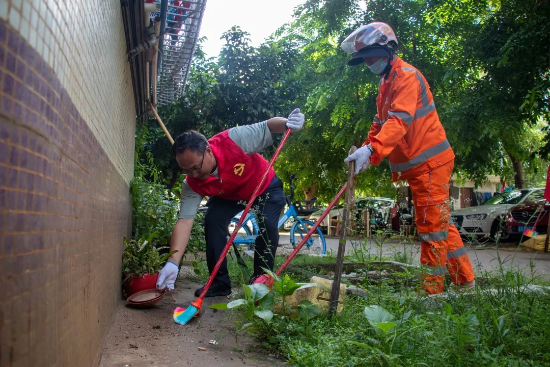 公司黨支部率先垂范,積極響應工作部署。7月26日上午,黨支部迅速組織黨員干部,奔赴轄區“三無小區”開展愛國衛生攻堅行動。公司黨支部書記邢益芳、總經理黃彪、副總經理楊志剛、工會主席陳偉、城區作業部部長張文甫等領導干部以身作則,帶頭拿起清潔工具,與黨員同志們一起,聚焦環境衛生整治難點,清垃圾、除積水、掃死角。大家用實干彰顯黨員先鋒本色,以實際行動為登革熱、基孔肯雅熱等蚊媒傳染病的防控構筑起堅實屏障!